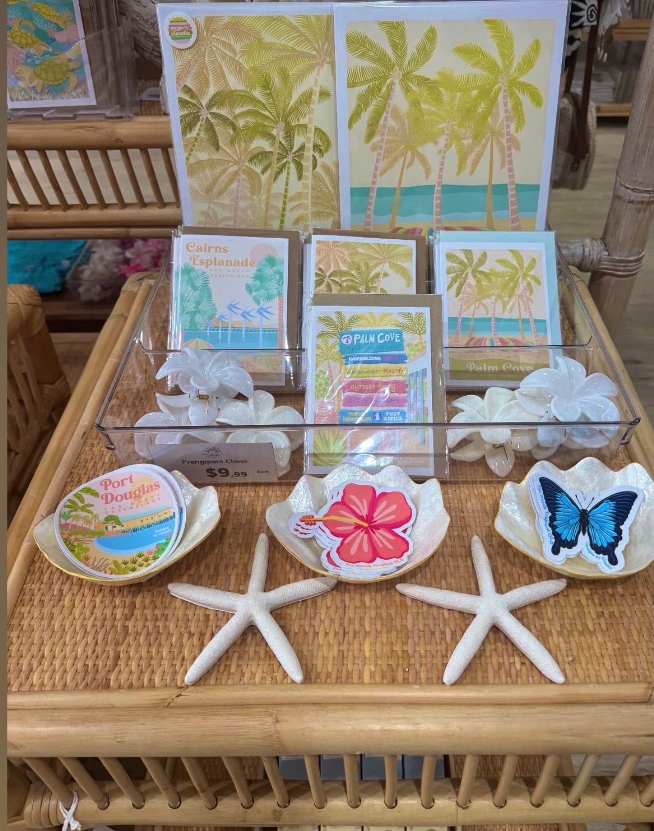 Makin Whoopee is one of the most colourful and creative stores in Cairns, proudly supporting all things Australian made and designed. They showcase a vibrant range of art, gifts, and homewares from Australian artists, with a strong focus on local talent. I'm proud to have my Cairns-inspired stickers, postcards, and greeting cards stocked as part of their ever-changing collection.